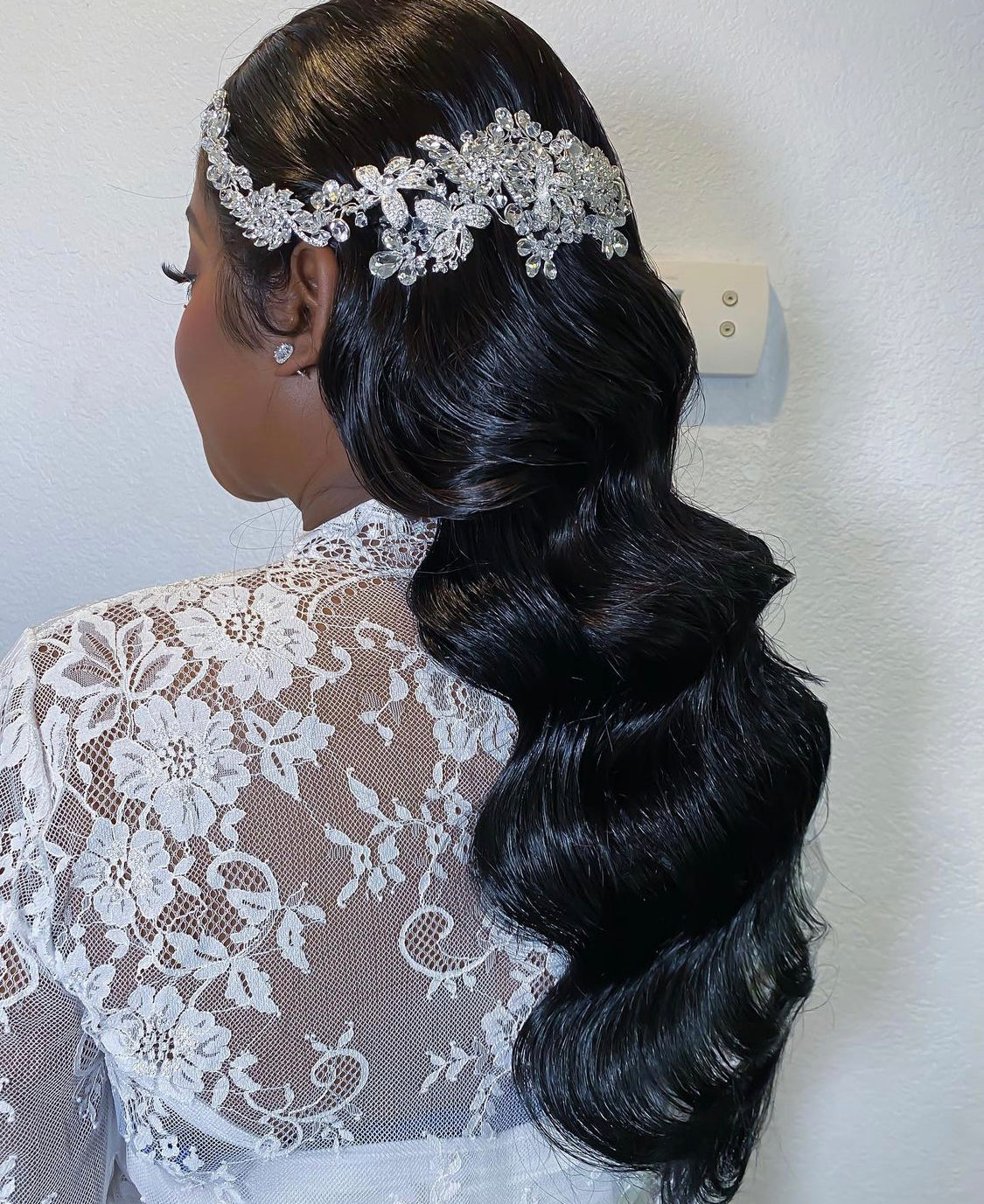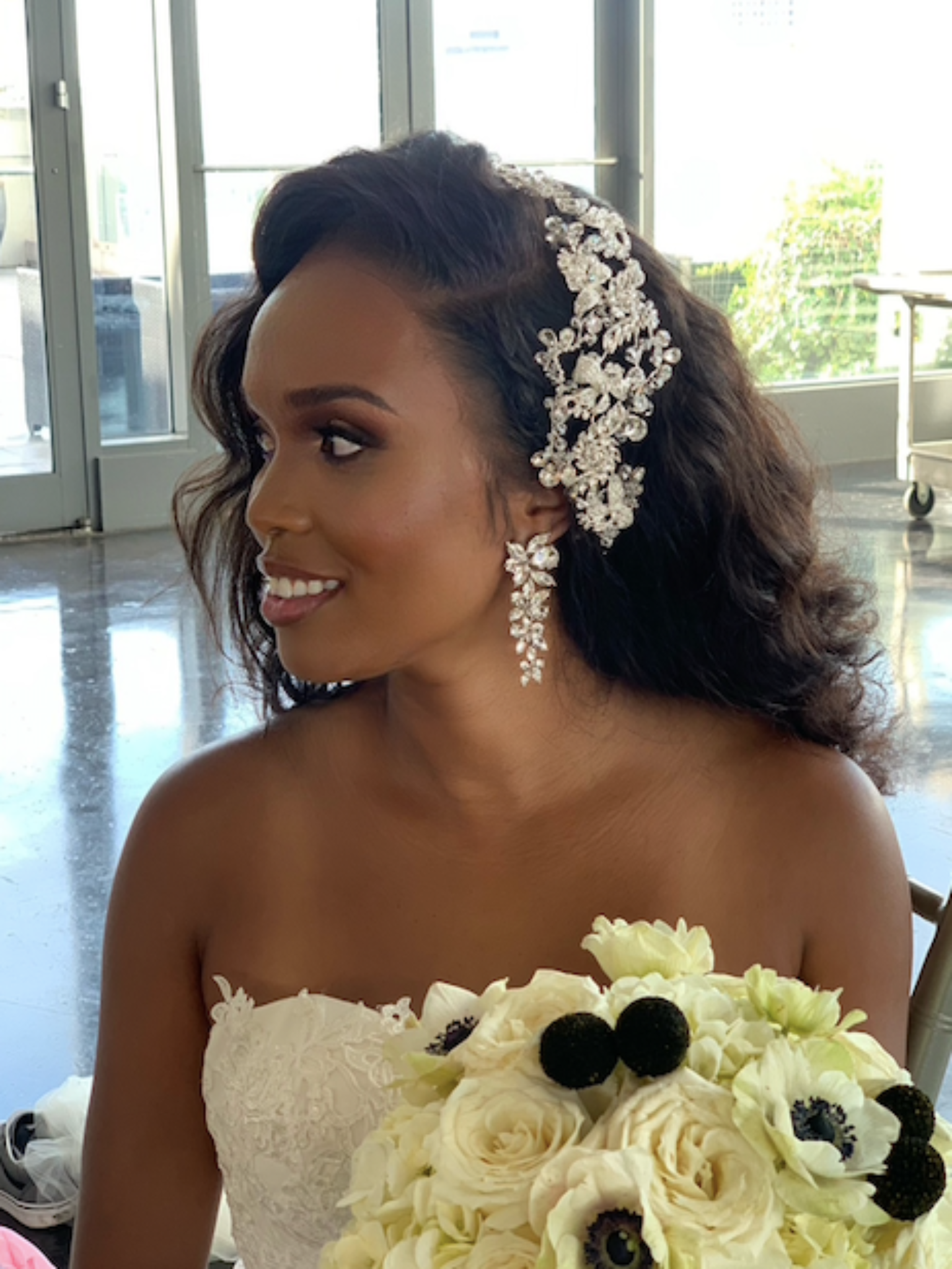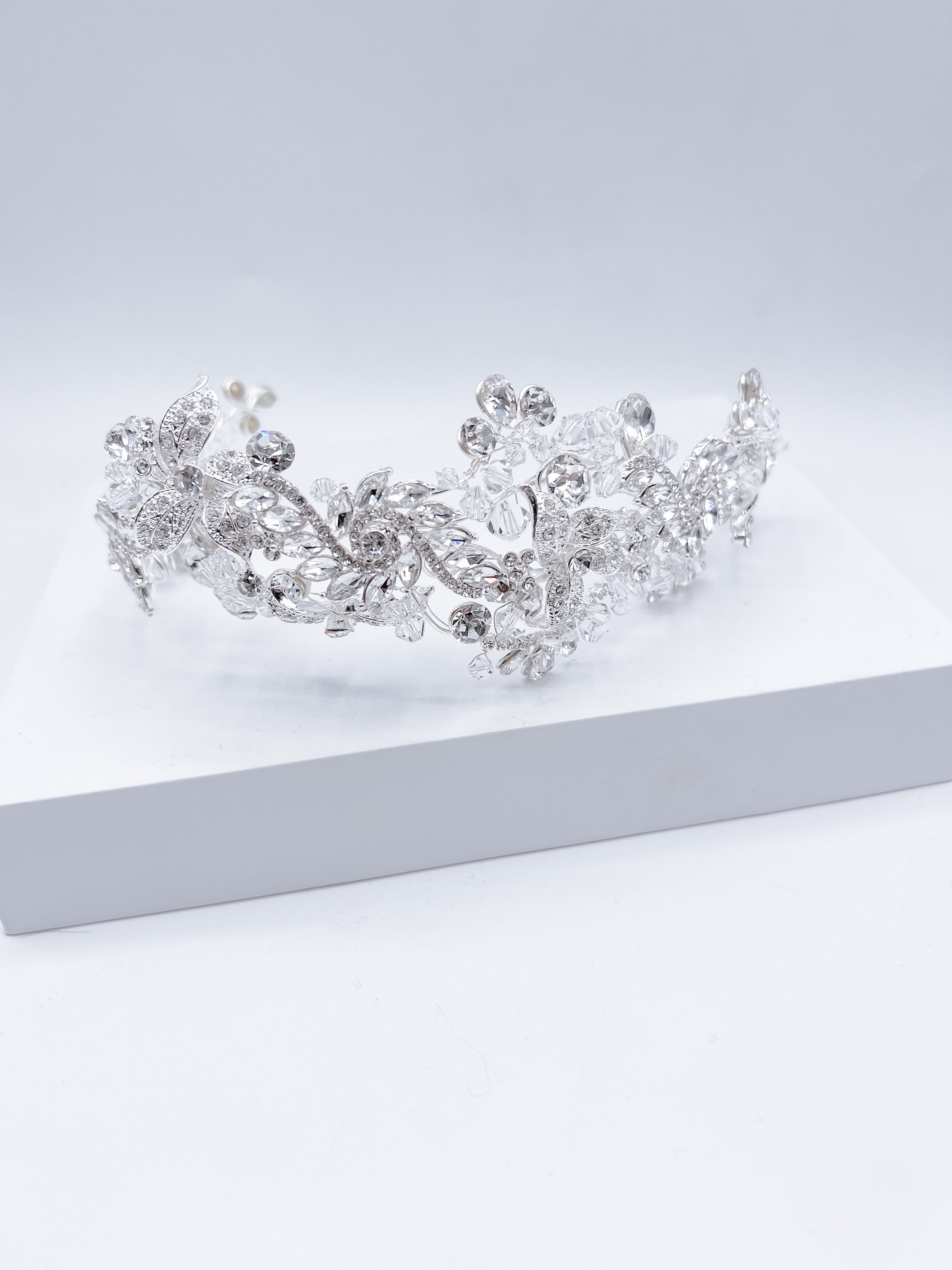 A bigger version of the Michelle headpiece w/out pearls yet w/ Swarovski crystals. Versatile & flexible, this piece can be worn in nearly any hairstyle. Can be worn on the side of the head or as headband. Michelle ll is perfect for your walk down the aisle. May take 7 - 10 days to ship out.