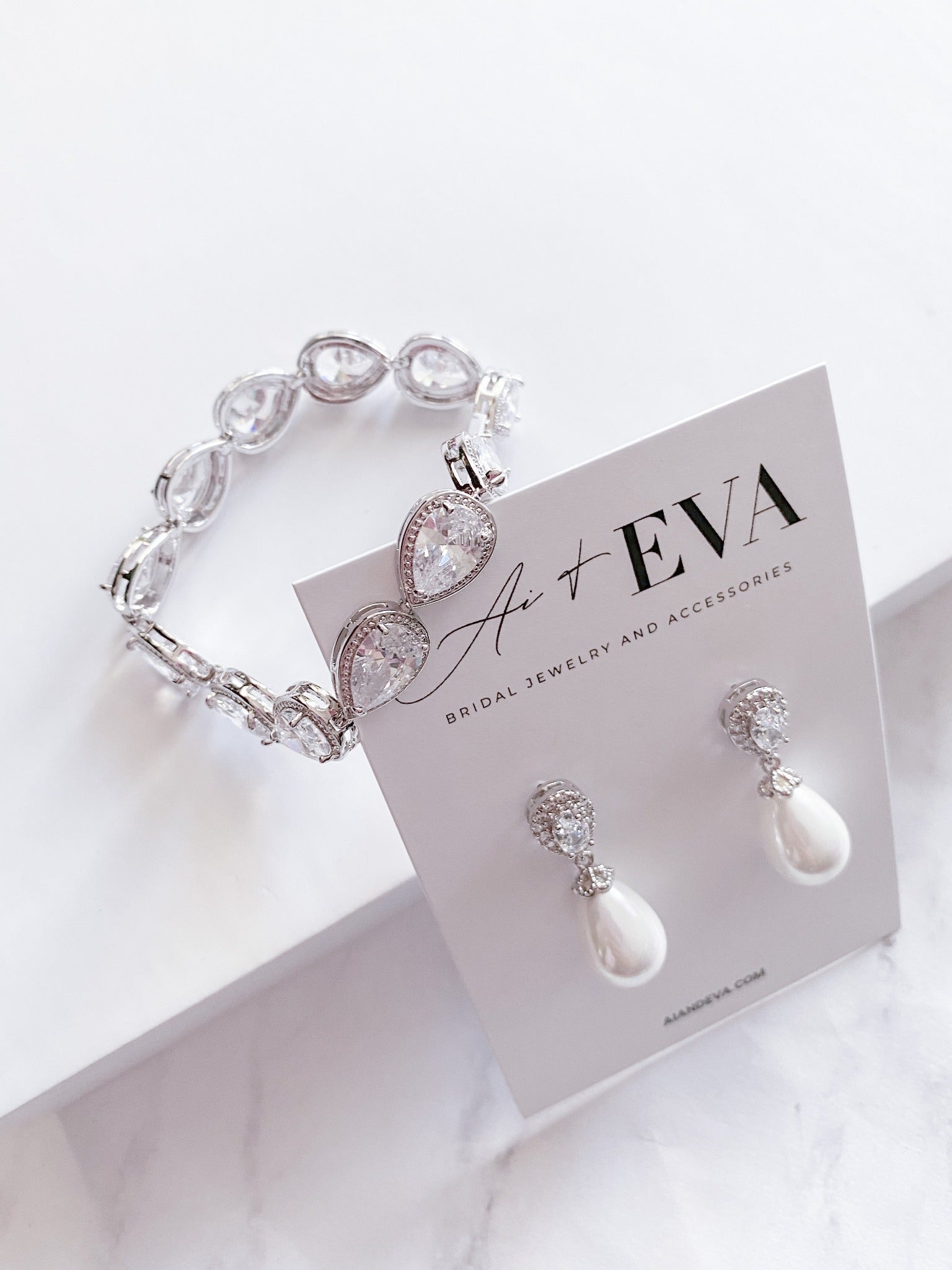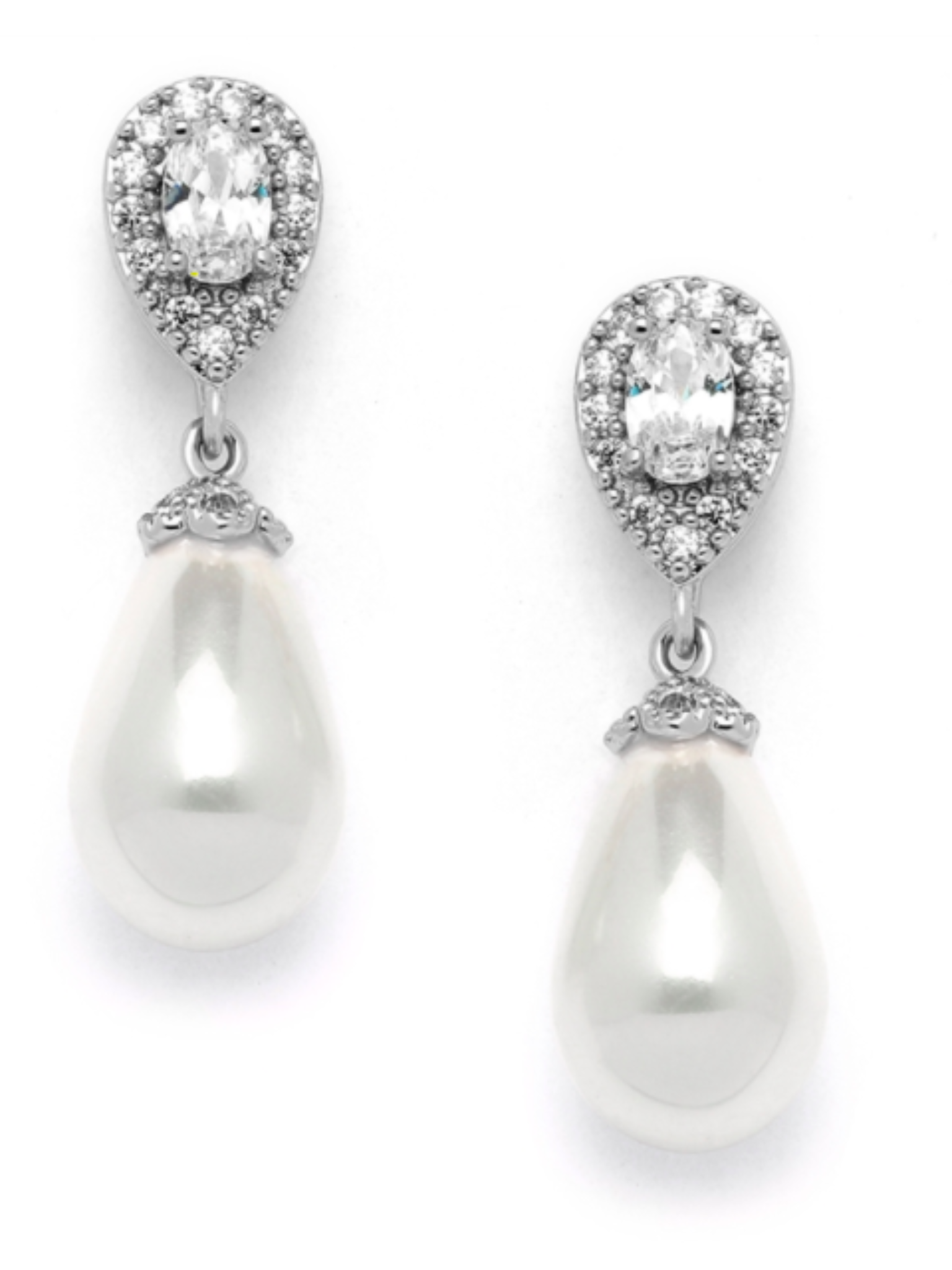 Simplistically elegant. Pair of crystal tear drop wedding earrings. Push back fastening