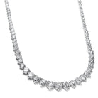 This elegant rhodium plated necklace offers a sophisticated and stylish finish perfect for a mother of the bride. Measuring 19" in length and featuring graduated round stones, this necklace is made with the same safety clasp used in fine jewelry. Enjoy a timeless look with quality craftsmanship.