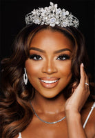 This Crown's bold design and sparkling cubic zirconia crystals make it the ideal accessory for any hair type, from long and flowing to short and chic. It stands 3 inches tall and does not include earrings.