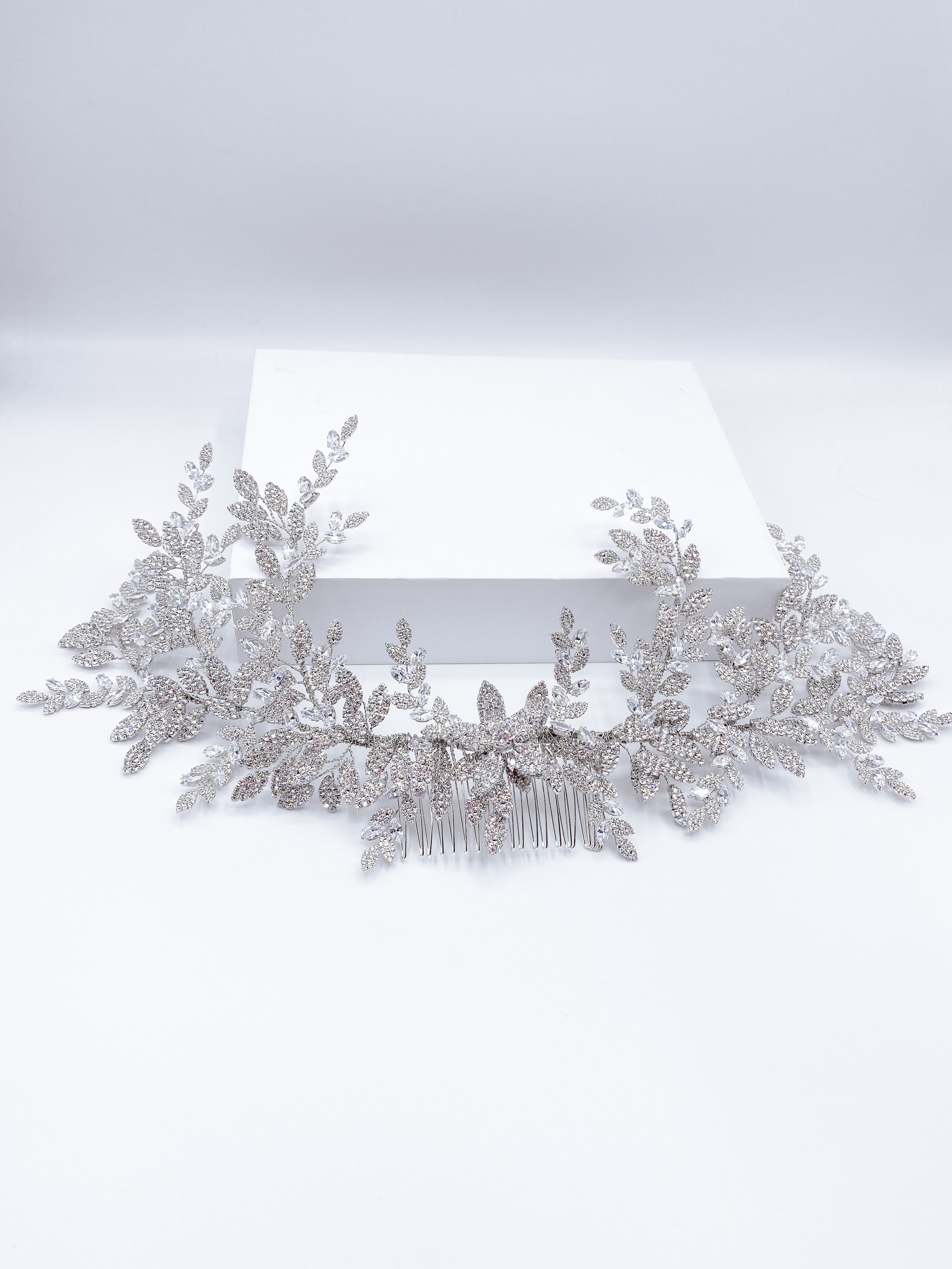 Don't settle for anything less than perfection on your wedding day. Add our beautiful and timeless headpiece to your bridal look and make a statement that will be remembered for years to come. Cubic Zirconcia crystal makes up this hair comb.