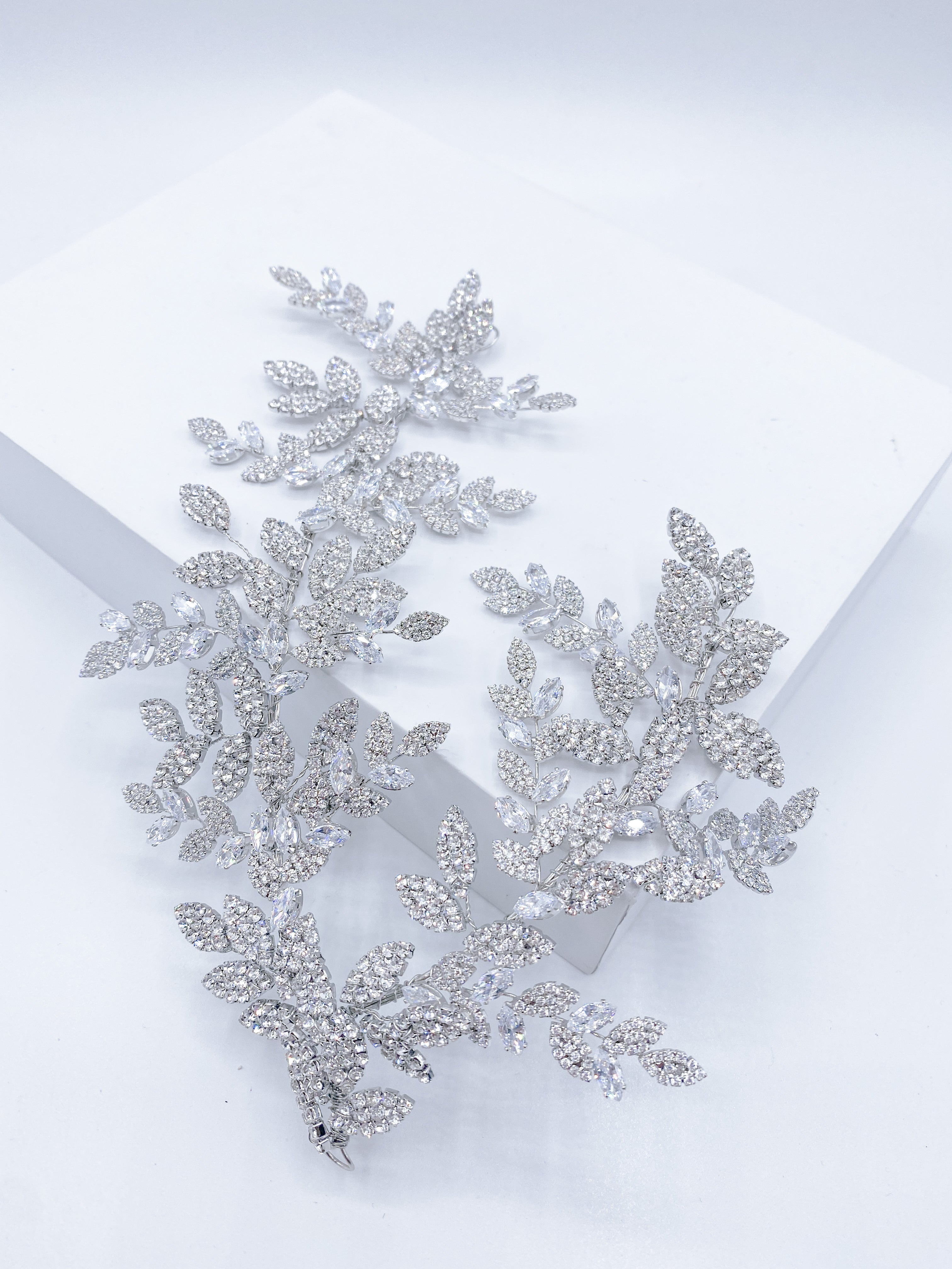 Apart of the AE Collection Silver Swarovski crystal makes up this hair comb.