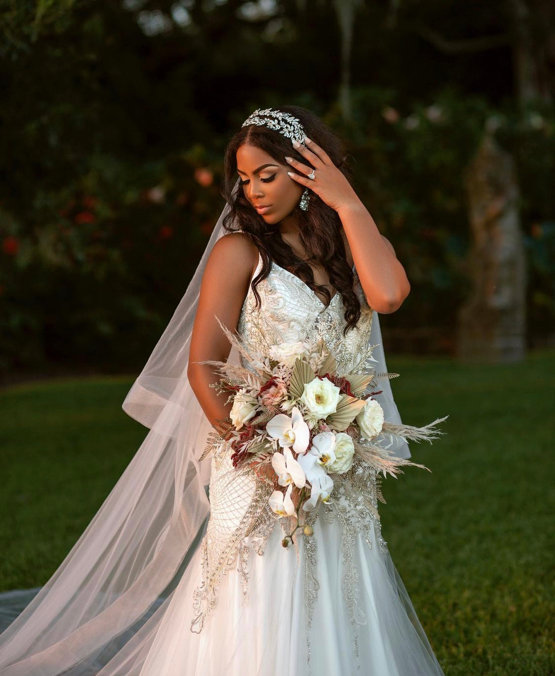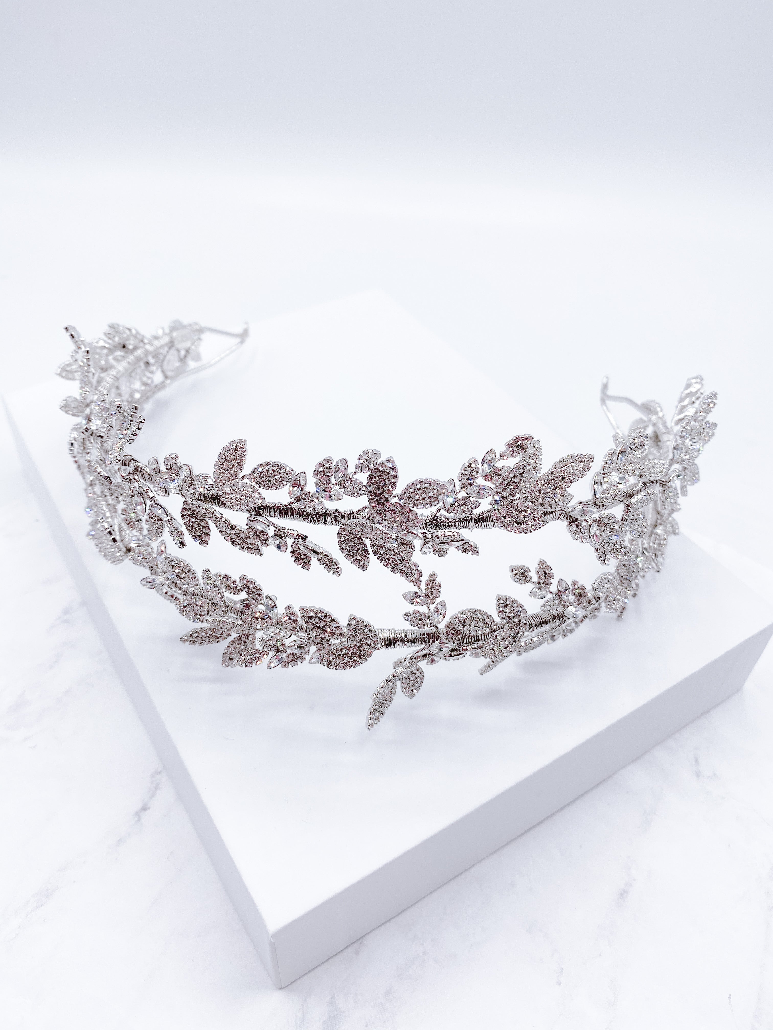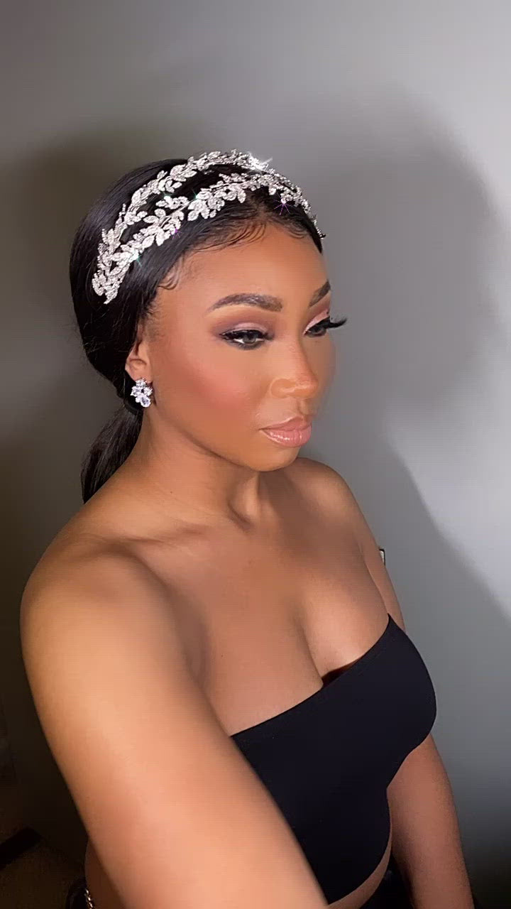 Apart of the AE luxury collection. Made to order headpiece. This is our most gorgeous headpiece is for the ultimate bride that wants to sparkle. Rhodium plated gives it the most luxurious shine and luster. This helps it to guard against scratches and tarnish.