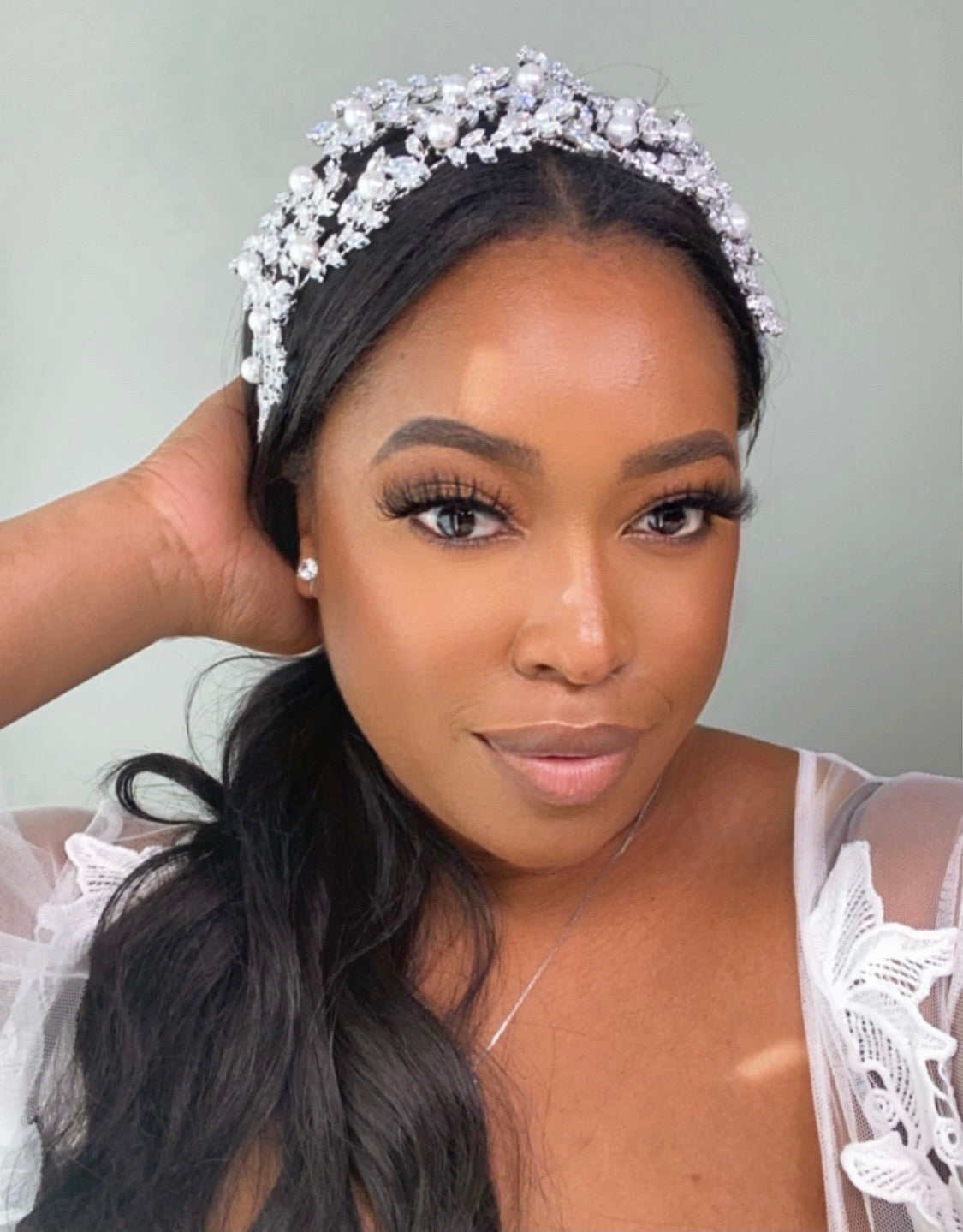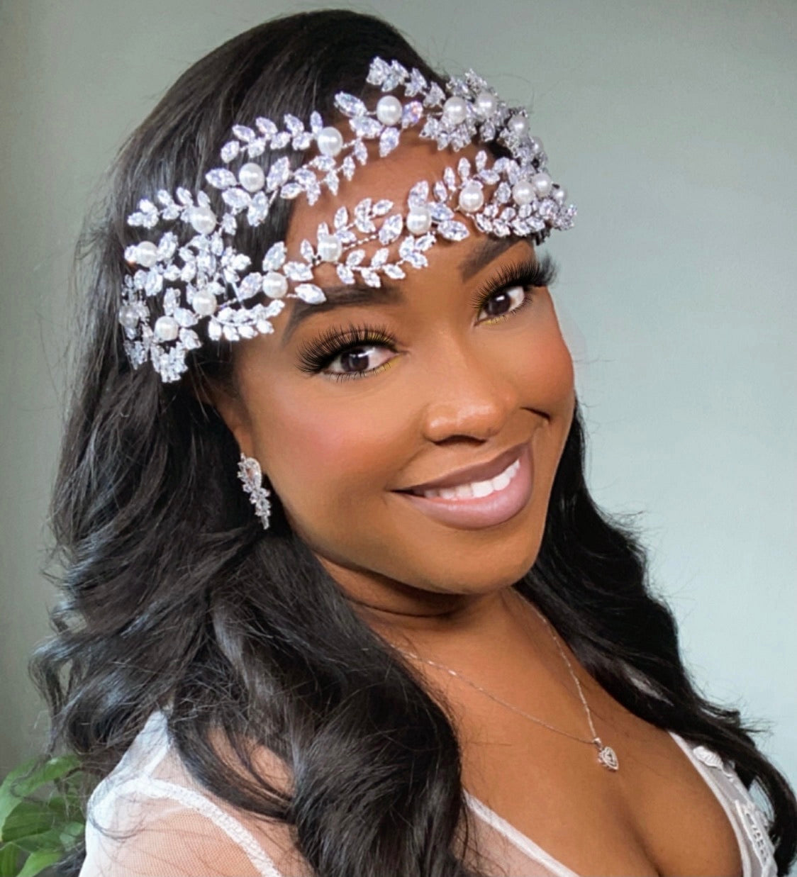 Apart of the AE luxury collection. This is our most gorgeous headpiece is for the ultimate bride that wants to sparkle. Rhodium plated gives it the most luxurious shine and luster. This helps it to guard against scratches and tarnish.