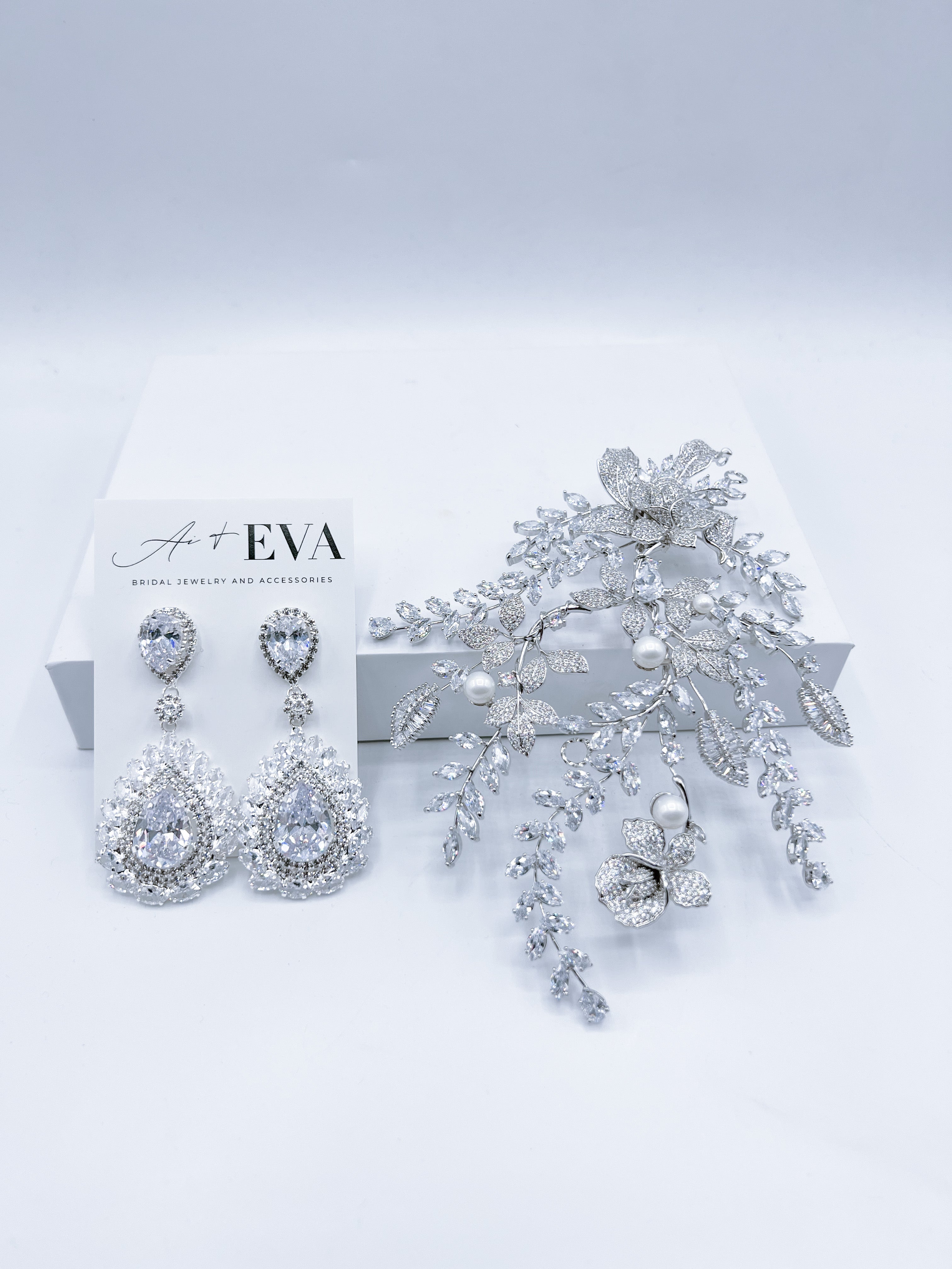 Apart of the AE Collection cubic zirconia and pearls makes up this hair comb.