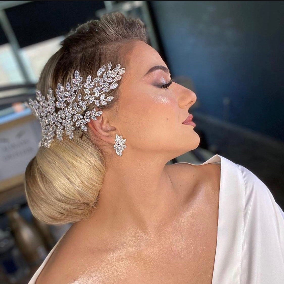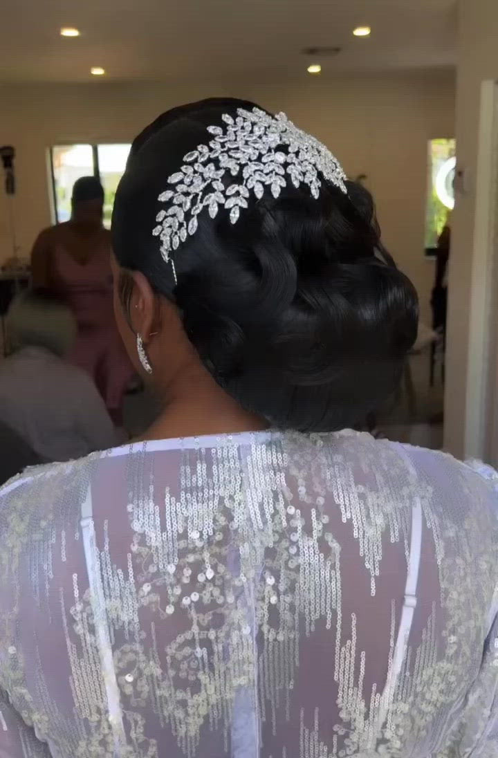 MADE TO ORDER Apart of the AE luxury collection. Traditional gorgeous headpiece is for the ultimate bride that wants to sparkle. Rhodium plated gives it the most luxurious shine and luster. This helps it to guard against scratches and tarnish to use over and over. Can be worn as a headband or a side part comb.