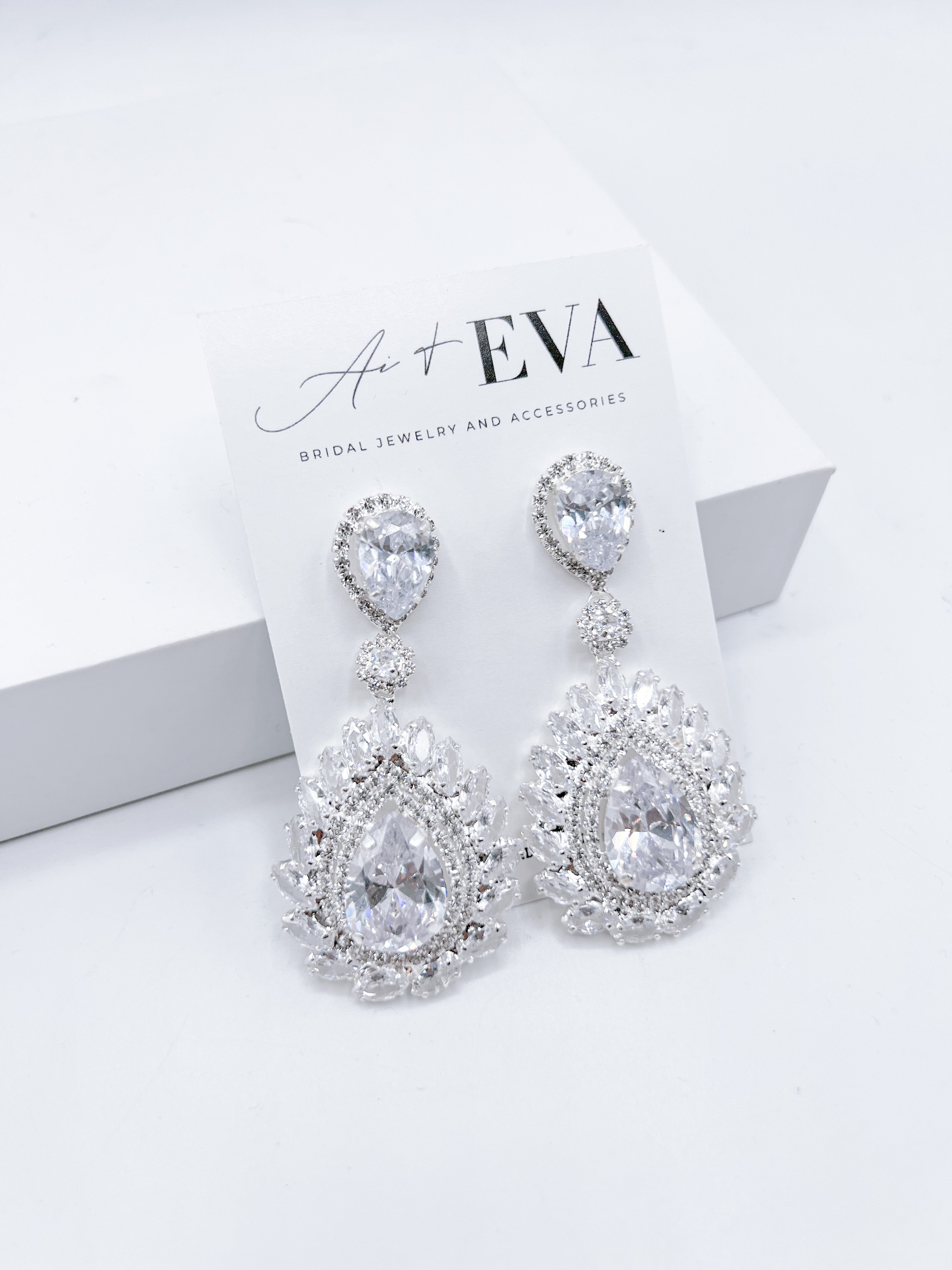 Crafted with Cubic Zirconia stones, these earrings feature a unique tear drop design and push back fastening for added security. The stylish pieces measure 2.75 in length. The perfect accessory to complete any outfit, you'll be sure to stand out from the crowd.