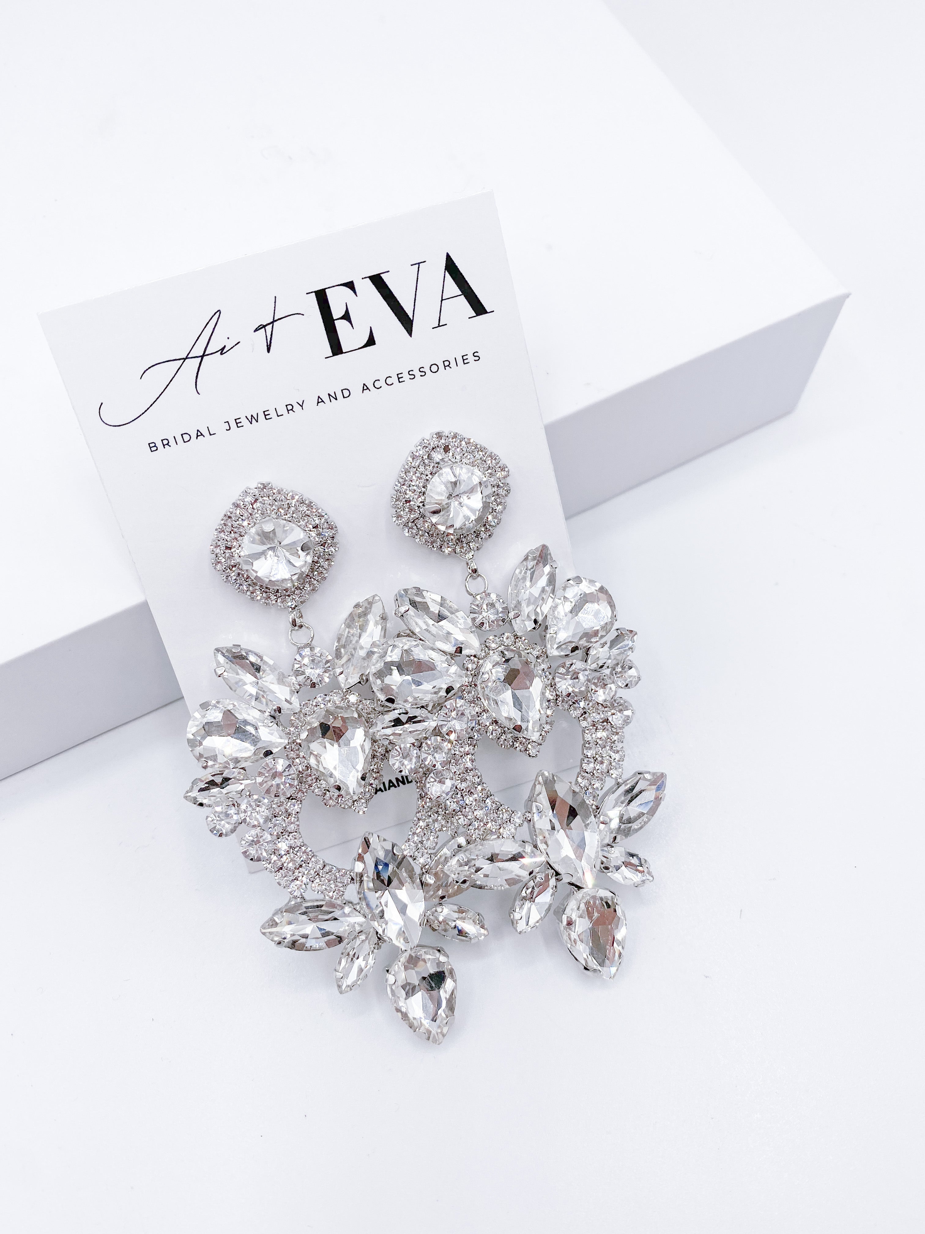 A gorgeous pair of statement earrings made with brilliant crystals in the perfect tear drop silhouette. A classic and luxurious look with just the right amount of sparkle