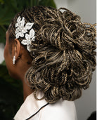 This elegant Luna Headpiece Set is designed to be flexible and versatile, making it the perfect addition to any bridal hairstyle. Whether you prefer a stylish side part or a classic pulled back bun, this headpiece will complement your look flawlessly. Included with this set are beautiful tear drop earrings, ensuring a complete and sophisticated look for your special day. Size 5:65”x 3”