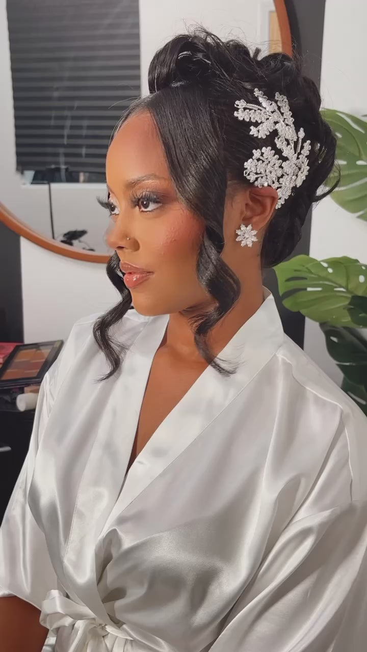 Complete your bridal ensemble with our cubic zirconia stunning headpiece and earrings set - a match made in heaven! Ready to ship for your special day. Stud Earrings are included