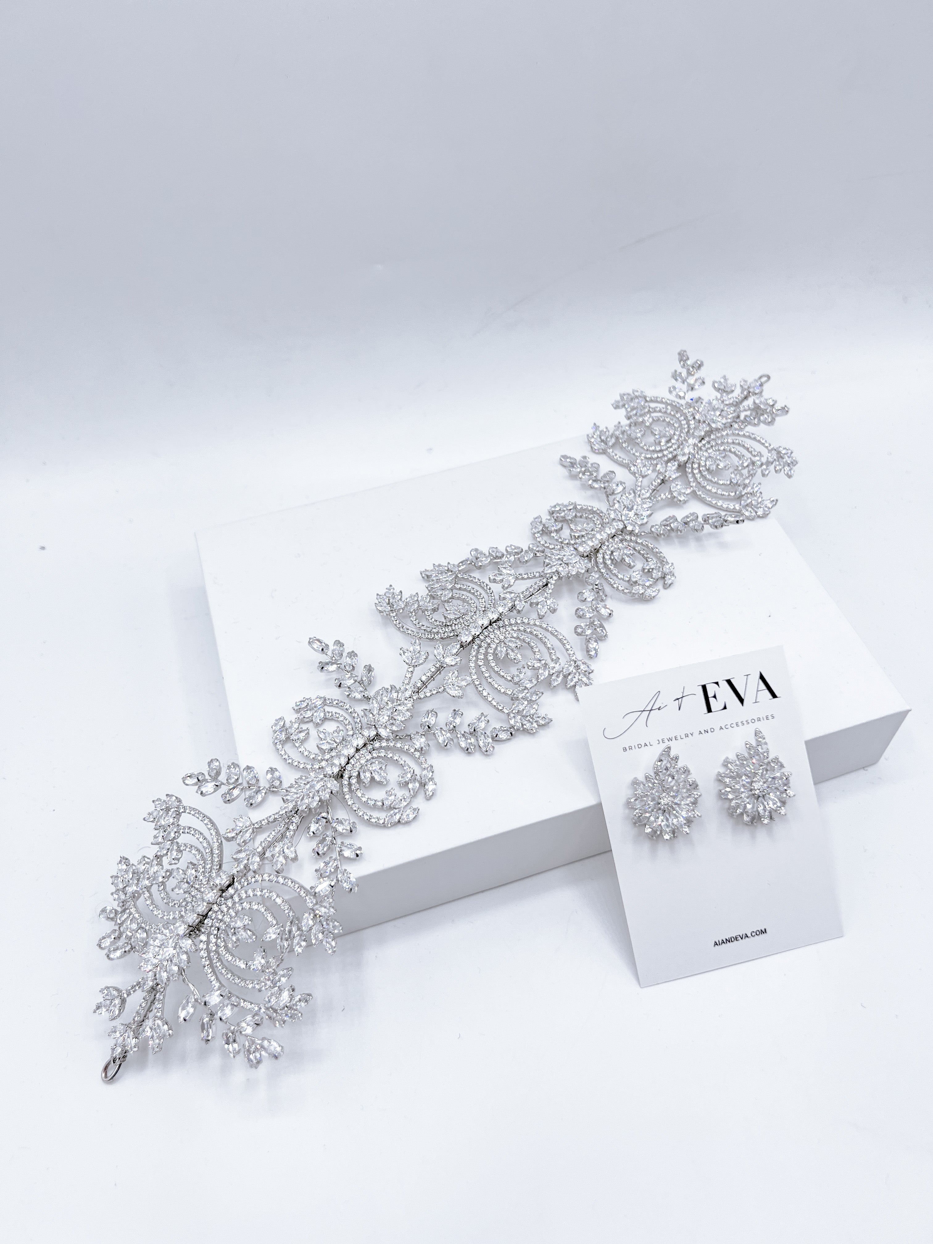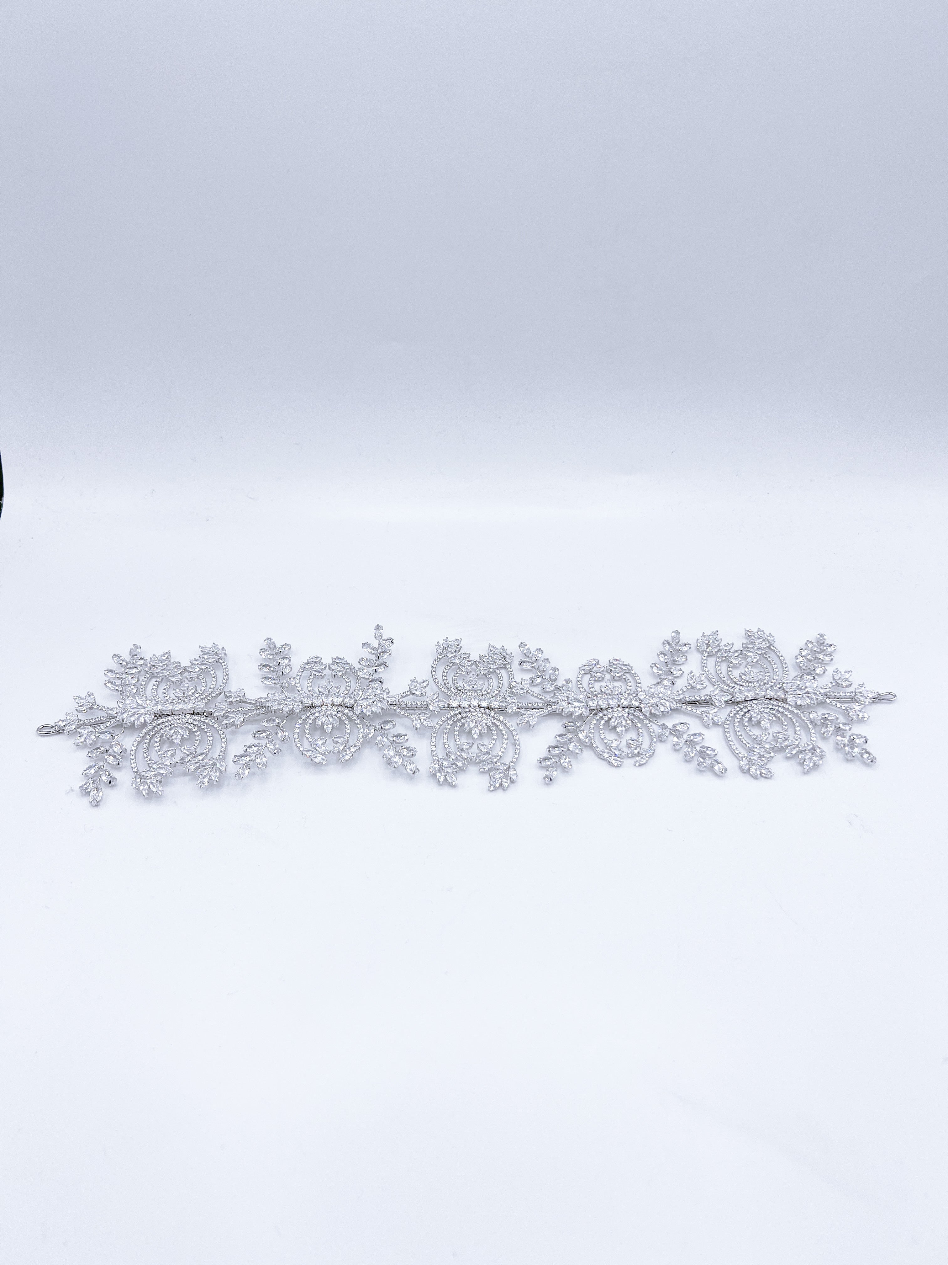 Adorn your wedding hairstyle with dazzling sparkle. Crafted with shimmering silver crystals, this hairpiece adapts to any look, from a side part to a swept-up bun. Make a show-stopping statement!